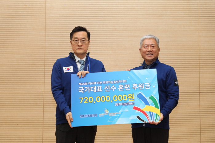 삼성전자는 16일 인천 글로벌숙련기술진흥원에서 열린 ‘제45회 러시아 카잔 국제기능올림픽대회 국가대표 선수 입소식 및 국제지도위원 합동 워크숍’에서 국제기능올림픽대회 한국위원회에 후원금 7억2천만원을 전달했다.