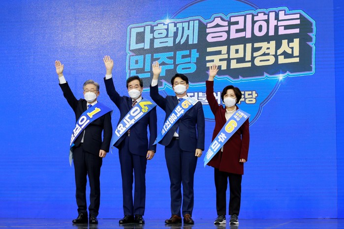 9일 오후 수원컨벤션센터에서 경기 지역에서 더불어민주당 합동 연설회를 열고 16만 명 경기지역 선거인단의 선택 결과를 발표한다.