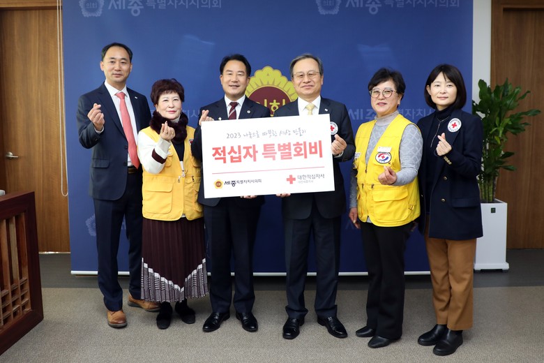 [세종 세계타임즈=이채봉 기자] 세종특별자치시의회 상병헌 의장은 9일 의장 집무실에서 대한적십자사 대전‧세종지사 송하영 회장에게 적십자 특별회비를 전달했다.