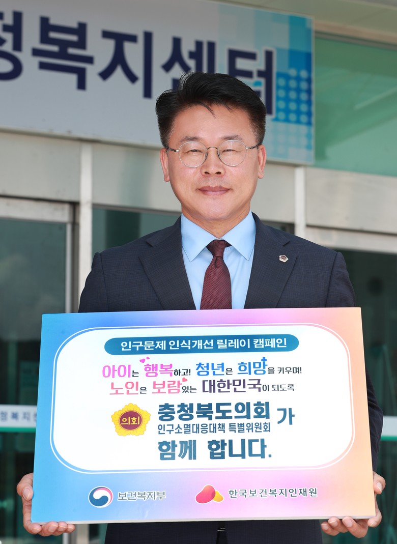 [충북 세계타임즈=이현진 기자] 충북도의회 인구소멸대응대책특별위원회 노금식 위원장(음성2)은 22일 저출산·고령화 등 인구문제에 대한 사회적 인식을 높이기 위해 ‘인구문제 인식개선 릴레이 캠페인’에 참여했다.