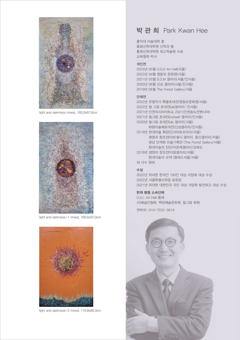 박관희 서양화가, 빛과 어둠(light and darkness) 전시회 개최 ... “빛과 어둠, 이 둘은 세상을 이루는 두 가지 큰 요소"