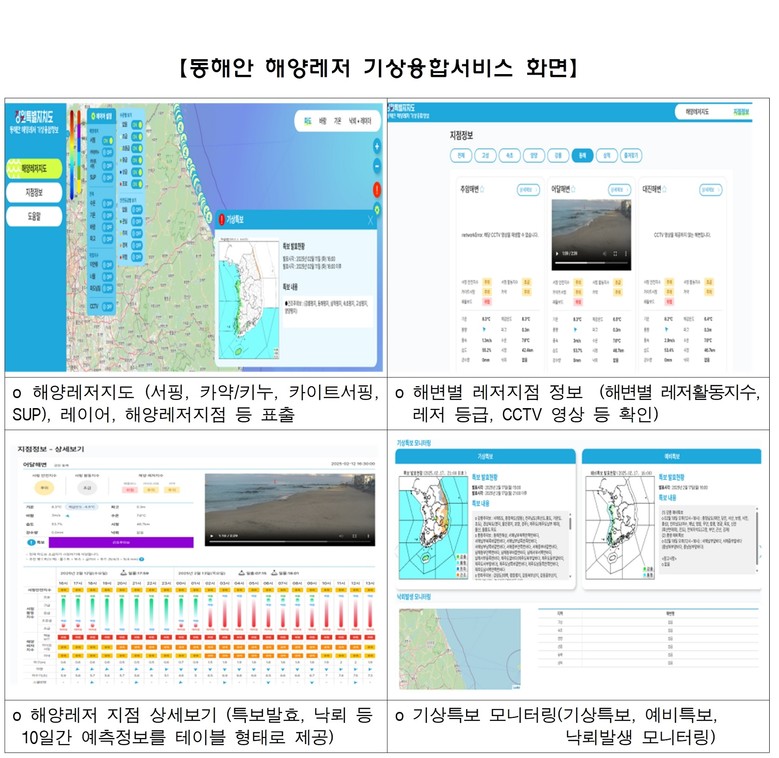 특히 도에서는 7월부터 각 시군에서 시작되는 대규모 해변축제, 서핑대회 및 페스티벌, 해양스포츠대회, 해양치유 활동 등 다양한 해양레저프로그램에 기상융합서비스를 연계해 관광객 유치에 적극 활용할 계획이다.