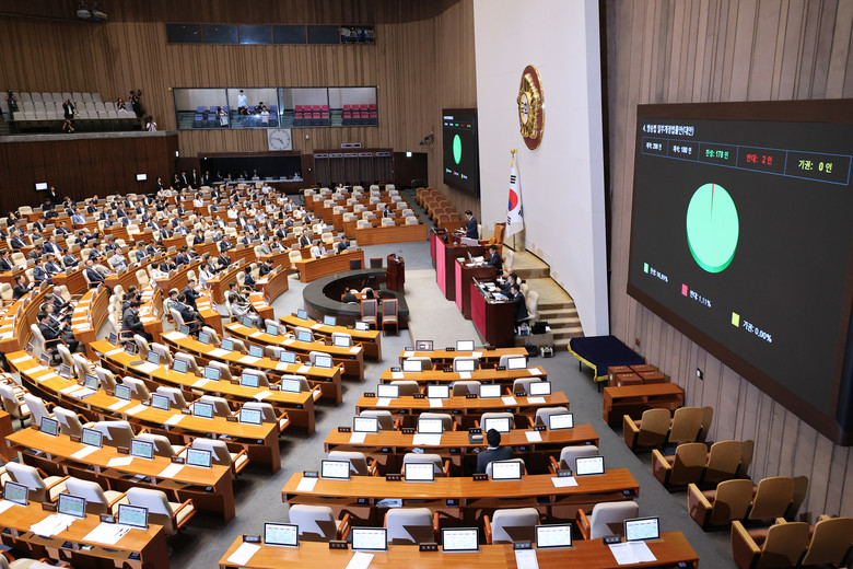 방송법은 필리버스터 종료 직후 곧바로 표결에 부쳐져 재석 180명 중 찬성 178명, 반대 2명으로 가결됐다.국회법 절차에 따라 필리버스터는 시작한 지 24시간이 지나면 재적 의원 5분의 3 이상(180명 이상)의 찬성으로 강제 종료할 수 있다.절대다수 의석을 차지한 민주당은 표결을 통해 국민의힘이 전날 시작한 필리버스터를 24시간 12분 만에 종료시켰고, 국민의힘 의원들은 이에 반발해 퇴장했다.방송법은 '더 강한 민주당'을 표방한 정청래 당 대표 체제에서 처음으로 국회 본회의를 통과한 '1호 법안'으로 기록됐다.방송3법은 정 대표가 추진하는 검찰·언론·사법 개혁 등 '3대 개혁' 중 언론 개혁을 뒷받침하는 핵심 입법으로, KBS·MBC·EBS 등 공영방송 지배구조 개편을 골자로 한다.