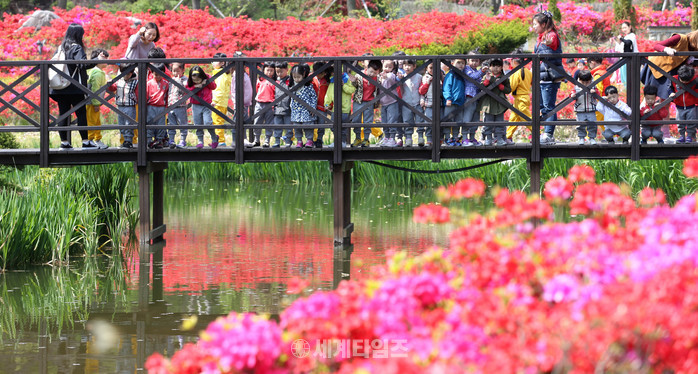 [대전 동구=세계타임즈 이장성 기자] 대전 동구(구청장 한현택) 추동 대청호자연수변공원에 식재된 8만 본의 영산홍이 활짝 꽃을 피우며 눈부시도록 아름다운 자태를 선보이고 있다.