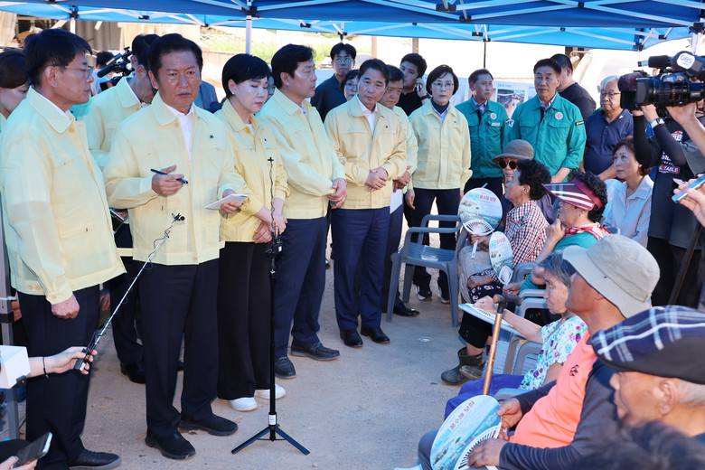 정 대표는 이날 수해를 입은 경남 합천 삼가면 송곡마을도 찾아 집을 잃고 마을회관에 머무는 주민들을 위로했다. "국민이 고생하고 힘들 때 국가가 나서서 복구하고 지원해드려야 하는데, 수재민 입장에서 원하시는 만큼 제대로 안 되는 것 같다"고 말했다."100% 만족하는 보상은 없고, 주민들이 원하는 대로 다 해주는 게 맞지만, 그게 안 된다면 곧바로 수해지원금 등의 성금이라도 직접 올 수 있도록 해달라는 (주민들의) 말씀이 있었다"며 "국민들께서 지정 기부를 해주시면 주민들에게 힘이 될 것"이라고 덧붙였다.