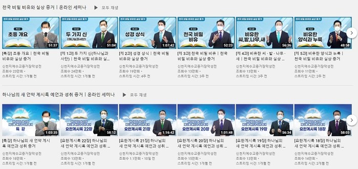 한편, 오는 15일 오전 10시에는 신천지예수교회 공식 유튜브를 통해 이만희 총회장이 요한계시록에 대한 특강을 할 예정이다. 신천지예수교회의 기타 세미나 강의는 공식 유튜브 채널(신천지예수교 증거장막성전)과 온라인 교육 플랫폼 ‘말씀광장’에서 확인할 수 있다.