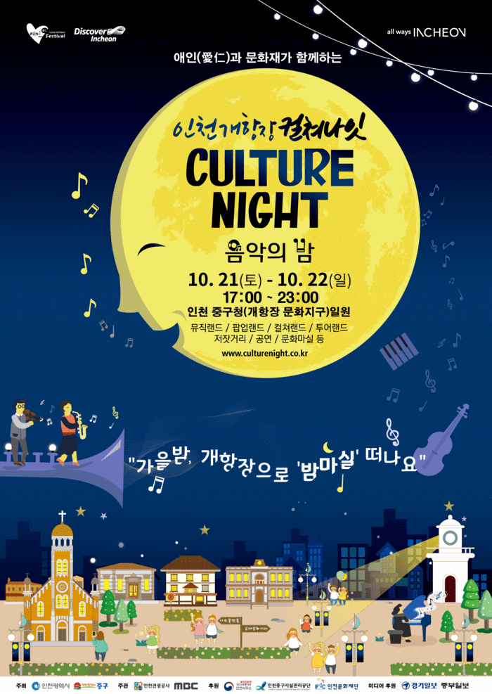[중구=세계타임즈 심동윤 기자] ‘인천 개항장 컬쳐나잇 음악의 밤’이 10. 21(토) ~ 10. 22(일)까지 인천개항장문화지구 일원에서 개최된다.