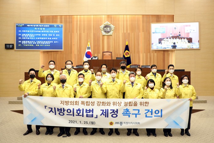 세종시의회는 이날 2차 본회의에서 통과된 ‘지방의회법 제정 촉구 건의안’을 대통령 비서실과 국무총리실, 국회의장실 및 국회사무처, 각 정당 대표와 전국 지방의회 등에 발송할 계획이다.