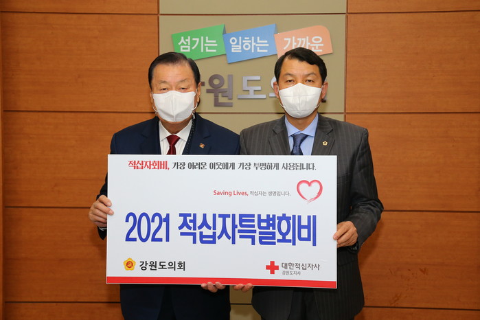 이번 전달식에서 강원도의회 곽도영 의장은 대한적십자사 강원도지사 이돈섭 회장에게 회비 3백만원을 전달하였다.