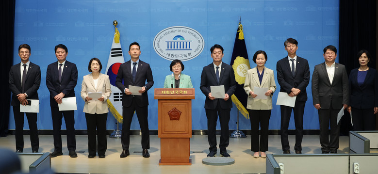 '법카의혹' 현장검증 결과 설명하는 민주당.조국혁신당 과방위원들 (연합뉴스)