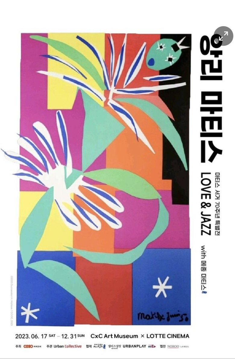 한편, ’앙리 마티스, LOVE & JAZZ‘는 ㈜씨씨오씨, 메종 마티스(Maison Matisse), 알레산드로 멘디니(Alessandro Mendini), 하이메 아욘(Jaime Hayon), (주)에이랩, 아트앤워크(ArtNWork), 한국케엠케색채연구소 등이 함께한다.