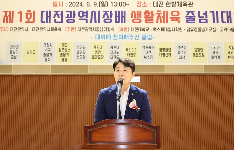 김진오 부의장은 축사를 통해 “줄넘기는 뛸 수 있는 공간과 줄만 있으면 혼자서도 즐길 수 있는 유산소 운동으로서 심폐기능과 근력을 높여주는 등 많은 장점이 있다”며, “시민들의 건강을 지키는 일상 속 생활체육으로 줄넘기의 저변이 확대될 수 있도록 대전시의회도 노력해 나가겠다”고 말했다.
