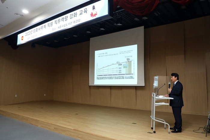 [세종=세계타임즈 이채봉 기자] 세종특별자치시의회(의장 이태환)는 3월 31일부터 4월 1일까지 양일간 세종시립도서관에서 사무처 직원을 대상으로 직무역량 강화 교육을 실시했다.