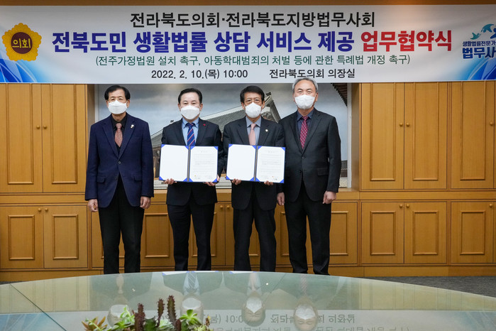 이와함께 도민들의 법률지식을 높이기 위한 생활법률 교육도 병행하기로 했다. 또, 도민들의 법률서비스 이용 편의를 제고하기 위해 전주가정법원 설치 촉구 활동도 펼치기로 협약했다.
