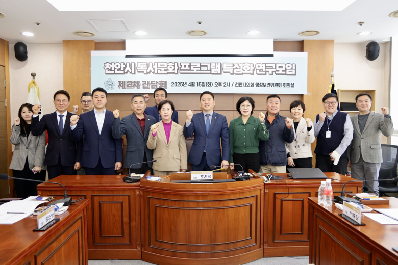 [천안시 세계타임즈=이현진 기자] 천안시의회(의장 김행금)는 ‘천안시 독서문화 프로그램 특성화 연구모임’(대표의원 조은석)이 4월 15일 제2차 간담회 및 착수보고회를 열고 동참의원들과 연구방향 등을 논의했다고 밝혔다.