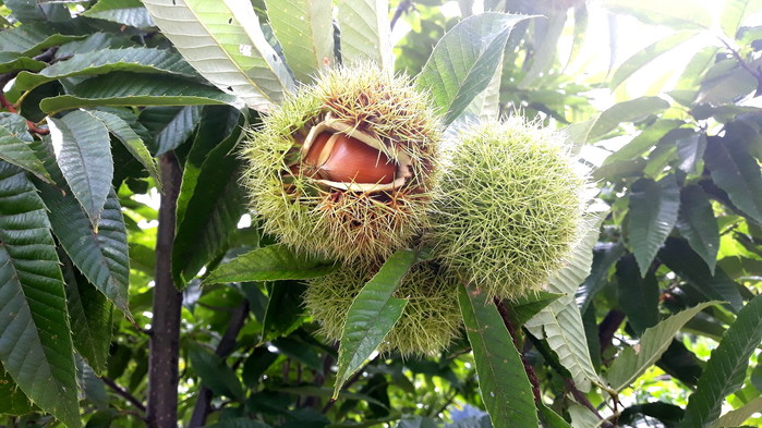 [진안=세계타임즈 임하영 기자] 1일 진안군 주천면 운봉리 구암마을 앞 밤나무의 알밤들이 조금씩 고개를 내밀고 있다.