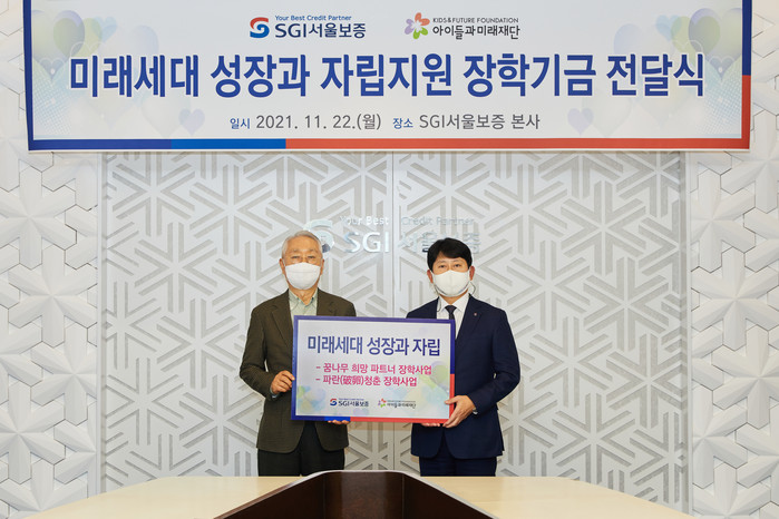 [세계타임즈 이송원 기자]서울보증보험은 사회복지법인 “아이들과미래재단”에 장학기금을 전달했다고 22일(월) 밝혔다.