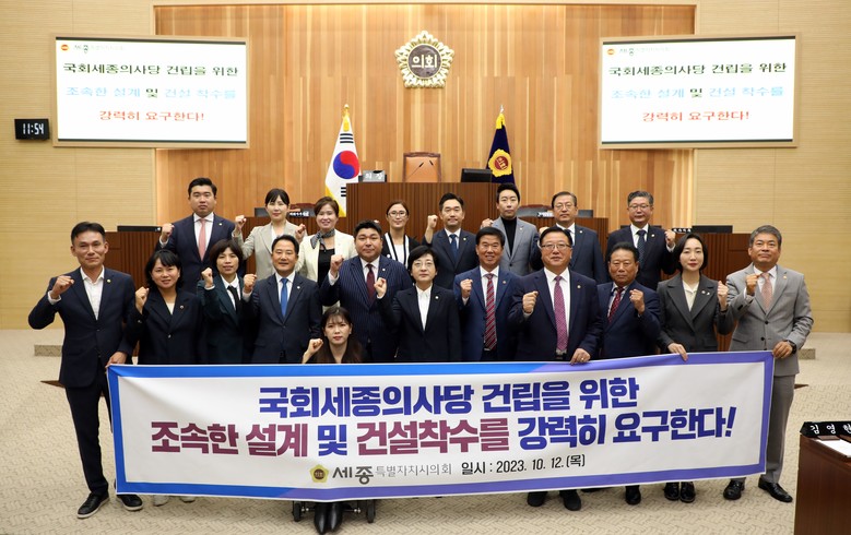 한편, 세종시의회는 ‘국회세종의사당의 조속한 설계 및 건설 요구 결의안’을 국회의장과 국무총리, 더불어민주당 대표, 국민의힘 대표, 행정중심복합도시건설청장 등에 이송할 예정이다.