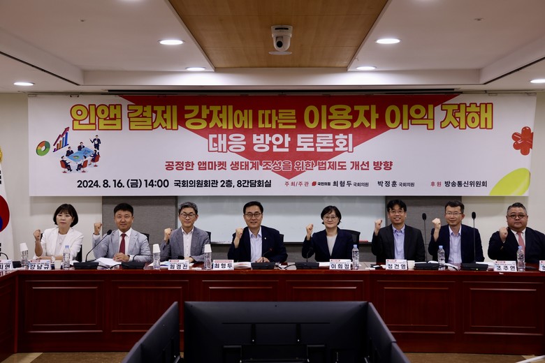 [세계타임즈 = 이채봉 기자] 글로벌 빅테크 기업들의 시장 지배력이 강화되면서 이들의 불공정 행위에 대한 우려가 국제적인 이슈로 부각되는 가운데 최형두 국회의원(경남 마산합포, 과학기술정보방송통신위원회 간사)과 박정훈 국회의원(서울 송파갑, 과학기술정보방송통신위원회 위원)은 16일 국회 의원회관 제8간담회의실에서 ⌜인앱 결제 강제에 따른 이용자 이익 저해 대응 방안 토론회⌟를 공동으로 개최했다.