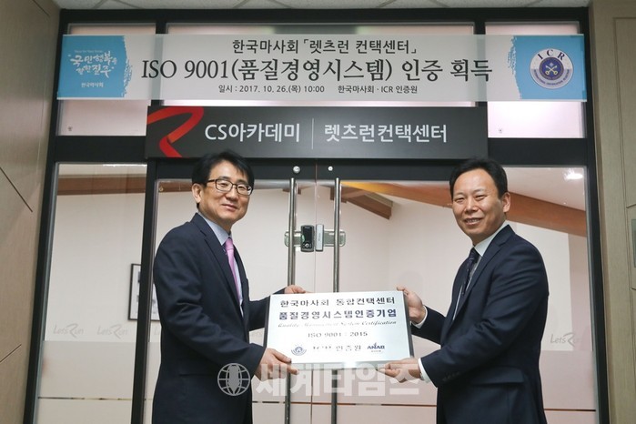 [세계타임즈 신민정 기자]한국마사회(회장 이양호)가 운영하는 렛츠런 컨택센터가 콜센터 부문 “ISO 9001:2015 품질경영시스템 인증”을 받았다고 지난 26일(목) 밝혔다. ISO 9001 인증제도는 국제표준화기구(ISO)에서 제정.시행하고 있는 표준으로 고객에게 공급되는 제품 및 서비스에 대해 기업이 갖추어야 할 최소한의 요구 사항 충족 여부를 제3자 인증기관이 객관적이고 독립적인 평가를 통해 인증함으로써 국제규격 이상의 서비스 능력을 보유한 사업장에 대하여 엄격한 심사를 거쳐 인증 마크를 부여하는 국제인증이다.