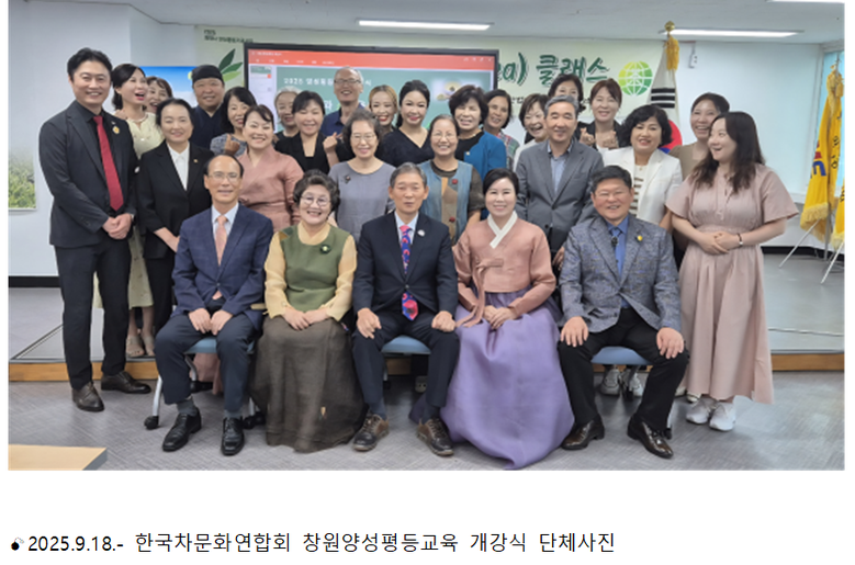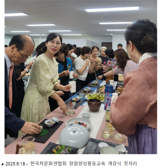 본 사업은 창원시가 공모하였던 ‘2025년 양성평등기금사업’에서 채택된 교육사업이다. 프로그램으로는 창원의 특이문화유산, 인성과 가정 예절, 현지 제작자가 강의하는 차마고도 보이차, 세계인이 즐겨 마시는 홍차, 차와 인문학, 차문화를 바탕으로 하는 창의와 도전이란 주제의 이론 강의와 건강꽃차 만들기, 다식 만들기, 행다교육 등 10강을 편성했다.