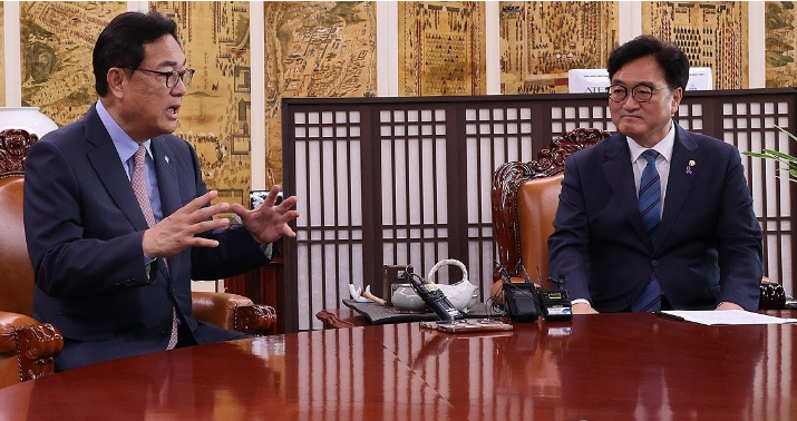 [세계타임즈 = 이채봉 기자] 우원식 국회의장은 취임 축하 인사차 예방한 정진석 대통령실 비서실장에게 대통령의 거부권 사용은 좀 더 신중해야 한다고 말했다.우 의장은 국회의장실에서 정 실장과 홍철호 정무수석을 만나 삼권분립을 위해서는 법안들이 헌법을 위배하거나 대통령의 헌법 권한을 침해하는 경우가 아니라면 거부권의 사용을 좀 더 신중하게 해야 한다고 강조했다.우 의장은 이것이 국회를 위해서도, 정부를 위해서도, 우리나라 민주주의를 위해서도 바른길이라며 이런 말씀을 대통령님께 잘 전달해주면 좋겠다고 당부했다.윤석열 대통령이 육사의 홍범도 장군 흉상 이전을 재고해줄 것과, 이태원 참사 진상규명 특별법 공포로 구성된 특별조사위원회가 제대로 역할을 할 수 있도록 협조해줄 것도 요청했다.우 의장은 북한 오물풍선 대응 등 남북관계에 대해서는 그런 과정을 평화적으로 잘 관리하려는 노력이 있어야 하고, 문제를 잘 풀어가는 중심적 주체는 정부라며 정부가 국민이 걱정하지 않도록 잘 관리를 해야 한다고 주문했다.정 실장은 견제와 균형이라는 민주주의의 작동 원리, 대화와 타협이라는 의회주의의 본령이 원활히 회복되고 실현되는 모습을 국민들이 보고싶어 할 것이라며 말했다.정 실장은 대통령은 헌법 수호자로서 재의요구권을 권한으로만 생각하는 것이 아니라 동시에 책무에 해당하는 것이라는 인식을 갖고 계실 것이라며 여야가 더 머리를 맞대고 법안이 본회의를 통과하는 순간까지 대화와 타협을 해야 한다. 여야 합의 노력을 밀도 있게 기울여야 한다고 강조했다.윤석열 대통령의 재의요구로 국회로 돌아온 법안들이 모두 여야 합의 없이 야당 단독으로 강행 처리됐다는 점을 우회적으로 지적한 것이다.정 실장은 저희 정부와 대통령실도 이번 총선 민심을 엄중히 받아들이고 있다며 정부는 어느 때보다 국회와의 협력을 위해 더 소통하고 노력하겠다. 우 의장님께서 여야가 극한 대립을 할 때 조정의 역할을 잘 해주셔서 정치 안정에 큰 역할을 해달라고 덧붙였다.개혁신당 천하람 원내대표도 우 의장을 예방해 국회 원 구성과 관련해 국회법을 준수하는 것도 중요하지만, 대화와 타협의 기본 정신을 조금 더 중시하고 민주당 일당 독재처럼 흘러가지 않도록 살펴달라고 말했다고 기자들에게 전했다.천 원내대표는 국회 운영위원회 비교섭단체 몫에 조국혁신당과 민주당의 비례대표 위성정당 출신 인사가 내정됐다며 개혁신당 의원을 운영위에 배치하는 등 납득 가능한 수준의 조치가 없으면 본회의에 불참하겠다고 했다.조국혁신당 조국 대표는 국회에서 홍 수석의 예방을 받고 대통령실 정무 라인이 더욱 적극적인 역할을 해야 한다고 강조했다고 조국혁신당 김보협 대변인이 기자들에게 전했다.조 대표는 문재인 정부 시절 이른바 김용균법산업안전보건법 개정안 통과를 위해 당시 청와대 민정수석이던 자신이 이례적으로 국회 운영위에 출석했던 경험을 거론하며 정부·여당이 법과 제도 개혁을 하기 위해서는 야당의 협력이 절대적으로 필요하다. 정부·여당도 양보할 것은 양보해야 한다고 말했다.