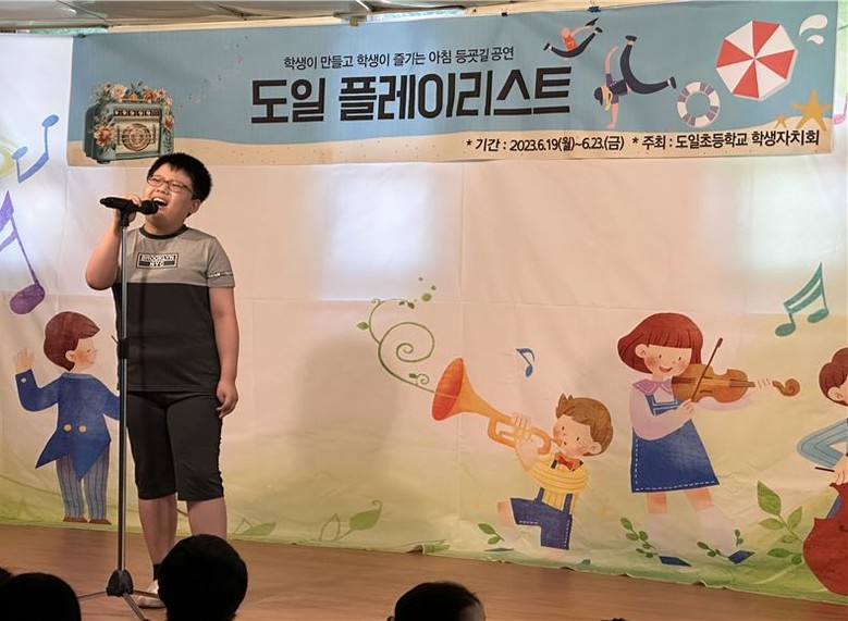 [시흥시 세계타임즈=송민수 기자] 도일초등학교(교장 김선) 학생자치회는 ‘아침 등굣길 공연(도일 플레이리스트)’를 개최했다. 기간은 6월 19일부터 6월 23일까지이며, 시간은 등교 시간인 오전 8:45부터 9:00까지이다.