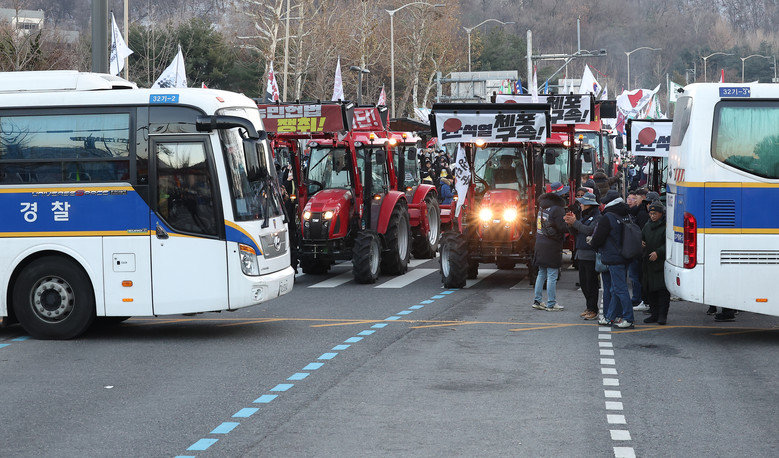 [세계타임즈 = 심귀영 기자] 더불어민주당은 22일 대통령 한남동 관저를 향하는 전국농민회총연맹 트랙터를 막아섰던 경찰 차벽이 철수한 데 대해 윤석열식 입틀막 공권력 행사가 더는 반복돼서는 안 된다고 밝혔다.김성회 대변인은 브리핑에서 농촌을 지키고자 하는 농민들의 헌신적 투쟁과 이를 돕기 위해 남태령으로 바로 달려와 주신 시민들이 만들어낸 결과라며 이같이 말했다.김 대변인은 윤석열 대통령이 직무 정지됐는데도 경찰만 이 사실을 모르고 있었나라며 국민의 안전을 살피지 않는 경찰의 강압적인 집회·시위 통제가 재발할 경우 이번 사태처럼 민주당이 적극 나서겠다고 강조했다.양곡관리법 거부권 행사로 이번 사태의 원인을 제공한 한덕수 대통령 권한대행 국무총리에게도 경고한다. 국민과 국회의 뜻을 저버리는 국정운영은 대통령 직무대행이 해서는 안 되는 일이다라고 말했다.김 대변인은 이어 페이스북에 경찰청을 찾아 경찰청장 직무대행을 만나 남태령 대치를 해소했다. 경찰은 곧 차벽을 열 것이고, 남태령역에서 사당역까지 시민과 함께 행진한다고 알렸다.민주당은 경찰 차벽 철수가 국회 행정안전위원회 신정훈 위원장을 비롯한 민주당 의원들이 경찰청과 전농 측을 설득해 중재한 결과라고 밝혔다.전농의 전봉준 투쟁단 소속 트랙터 30여대와 화물차 50여대는 전날 정오께 과천대로를 통해 서울에 진입하려다 서초구 남태령 고개 인근에서 경찰에 저지된 뒤 그 자리에서 밤을 새우며 이날 낮까지 이틀째 대치했다.이들은 양곡관리법 등 농업4법에 대해 거부권을 행사한 한 권한대행을 규탄하고 윤 대통령에 대한 체포와 구속 수사를 요구하며 지난 16일부터 전국 각지에서 출발했다.