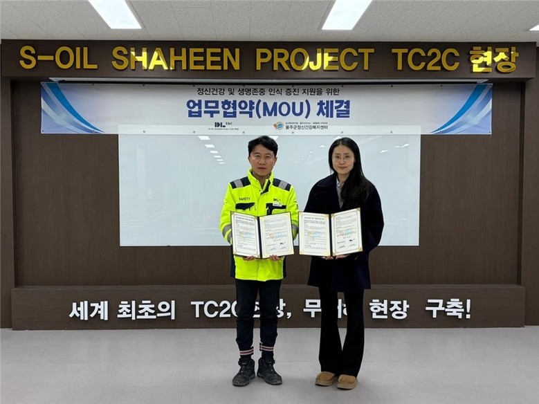 [울주군 세계타임즈=이호근 기자] 울주군정신건강복지센터(센터장 김경윤)가 지난 6일 DL이앤씨 S-OIL 샤힌 프로젝트 TC2C현장(이하 ‘DL이앤씨 TC2C 현장’)과 업무협약(MOU)을 체결했다.