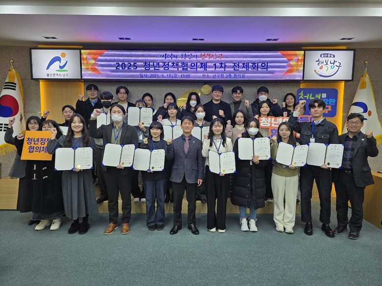[남구 세계타임즈=이호근 기자] 울산 남구(구청장 서동욱)는 17일 남구청 3층 회의실에서 청년정책협의체 위원 등 30여 명이 참여한 가운데‘2025년 청년정책협의체 1차 전체회의’를 개최했다.