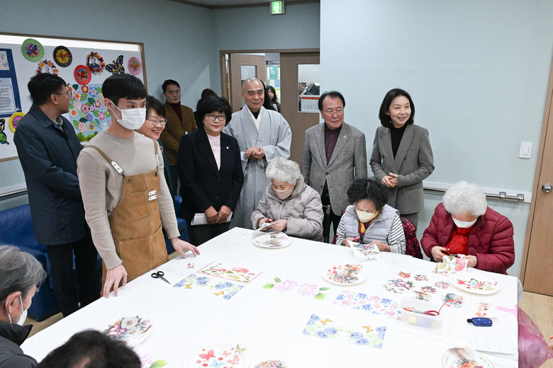 | ▲ 어르신 돌봄시설 프로그램 둘러보고 있는 최호정 의장 |