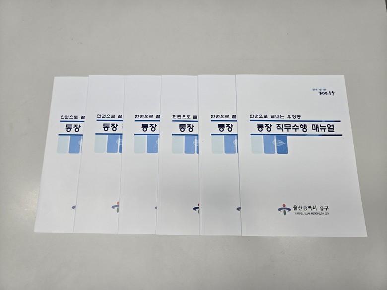 지침서(매뉴얼)는 총 26쪽 분량으로 △통장의 지위 및 역할 △주민등록·선거·민방위·복지사각지대 발굴 등 주요 업무 처리 절차 및 방법 △울산 중구의 구정 목표 및 방침 △중구의 상징 표시(심벌마크) △중구의 구목(대나무)·구화(진달래)·구조(학) △우정동 연혁 및 지명 유래 △공직선거법 등에 대한 내용이 담겨 있다.