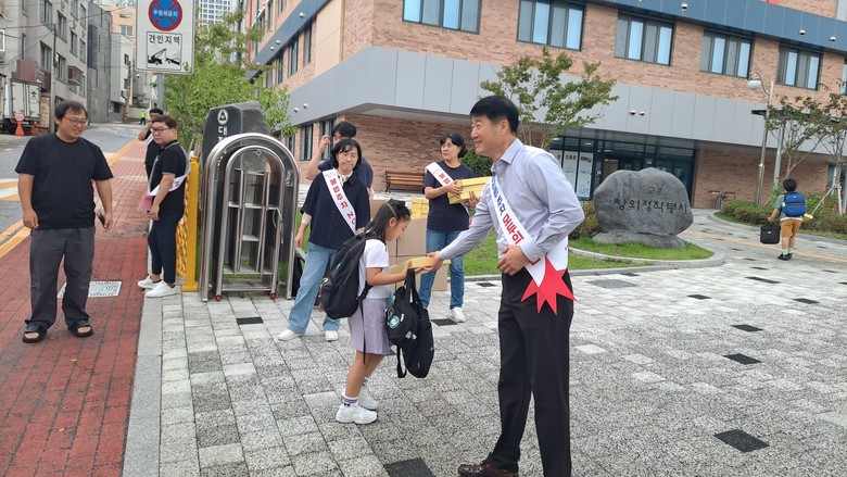 참여자들은 학교 정문 앞에서 피켓과 현수막을 통해 올바른 주차 문화 안내와 안전한 통행 환경 확보, 6대 불법주정차 금지구역 등에 대해 홍보하며, 학생들에게 홍보 물품과 안내문을 배부했다.