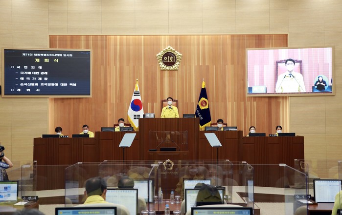 [세종=세계타임즈 이채봉 기자] 세종특별자치시의회(의장 이태환)는 14일 오전 10시에 열린 1차 본회의를 시작으로 오는 22일까지 9일간 제71회 임시회 일정을 진행한다.