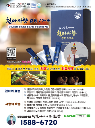 한편 천마사향은 1588-6720 또는 발효이야기(주)섬장 네이버 스마트스토어에서 구입 할 수 있다.