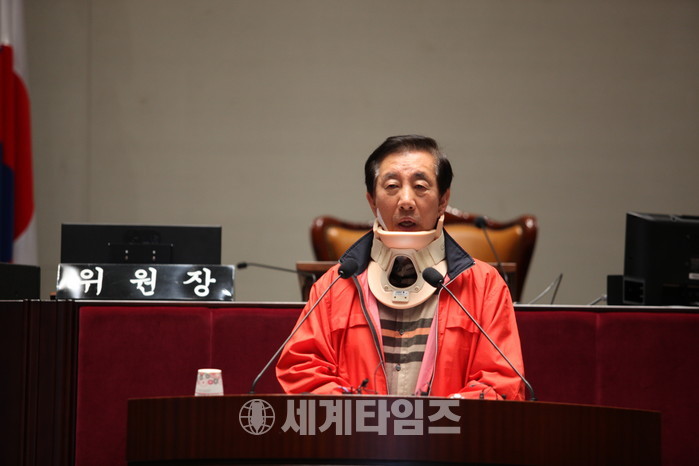 [세계타임즈 이채봉 기자]김성태 원내대표 동지여러분들, 가열찬 투쟁 함께해주신데 대해 너무나 깊이 감사드린다. 그리고 밤을 새워가면서 동조단식투쟁에 함께 해주신 의원여러분의 뜨거운 동지애에 힘들고 어려운 시간이 많지만 잘 이겨낼 수 있는 것 같다. 다시 한 번 이 자리를 빌려 감사드린다. 자유민주주의와 시장경제, 법치주의를 지켜나가고자 하는 자유한국당은 대한민국의 진정한 정당이다. 우리가 이 투쟁을 통해서 어떤 경우에도 어떤 정권에도 일희일비하는 대한민국이 아니라 우리 후손들에게 자손들에게 늘 평화와 번영, 안정을 추구할 수 있는 대한민국이 될 수 있게끔 더 장렬하게 잘 싸워야한다.