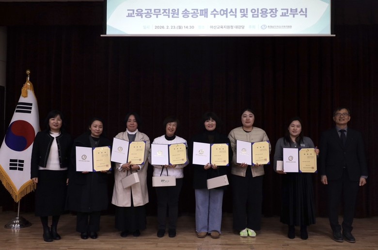신세균 교육장은 “오랜 시간 아산교육 발전에 헌신해 주신 노고에 깊이 감사드린다”라며, “새롭게 아산교육 가족이 되신 여러분도 희망찬 아산교육을 만들어가는 데 함께해 주시길 바란다”라고 당부했다.
