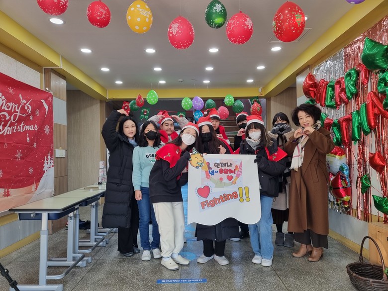 올해 최강한파로 매서운 추운 날씨에 한껏 움츠린 등굣길이었지만 뜻밖의 선물과 산타로 분장한 학생회와 환하게 웃으며 칭찬과 격려로 맞이해주신 선생님들의 응원에 학생들은 연신 환호하며 얼굴 가득 웃음이 넘쳤다.