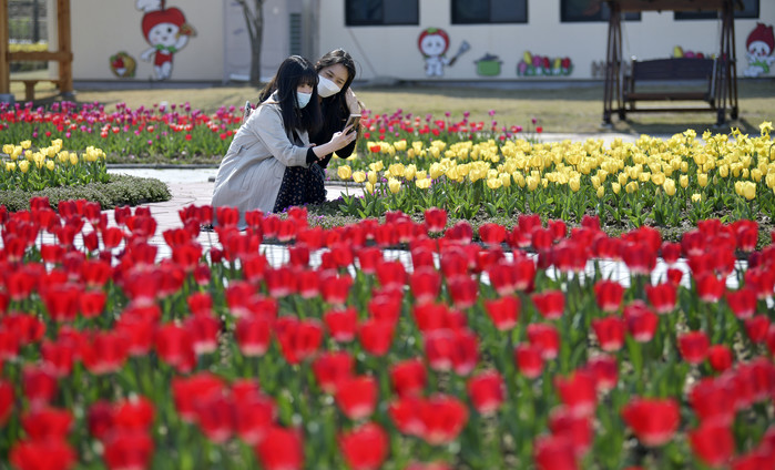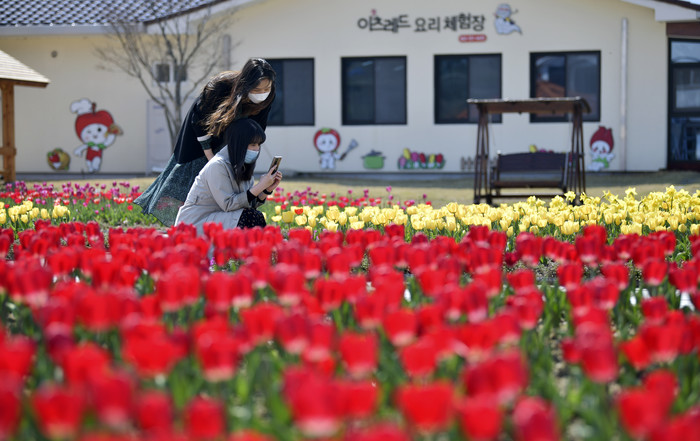 [장수=세계타임즈 임하영 기자] 전북 장수군 누리파크에 튤립이 만개해 사람들의 눈길을 끌고 있다.