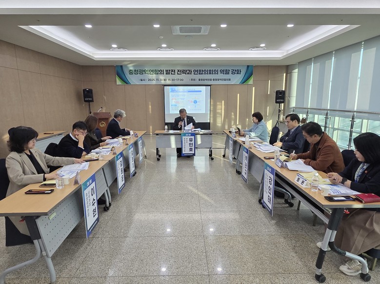 좌장을 맡은 유인호 부의장은 “충청광역연합이 출범 1주년을 앞두고 제도적 기반과 인력·재정 여건을 강화해야 지속 가능한 연합으로 발전할 수 있다”며 “충청권 4개 시·도가 체감할 수 있는 협력 효과를 위해서는 중앙정부의 재정 지원과 법·제도적 뒷받침이 절실하다”고 밝혔다. 이어 “충청광역연합의회가 지방분권시대의 선도적 협치 모델로 자리 잡길 기대한다”고 덧붙였다.