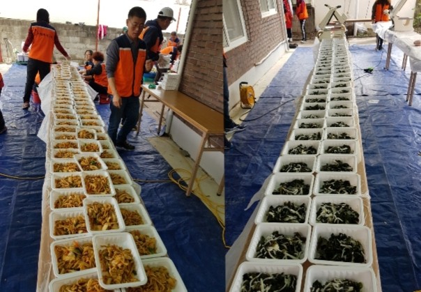 이날 봉사에는 유희자 이사를 비롯해서 회원 80명이 총각무김치, 어묵&해물볶음, 미역초절임 3가지 밑반찬을 만들고 대전시 소외계층 240가정에 배달까지 하였다.