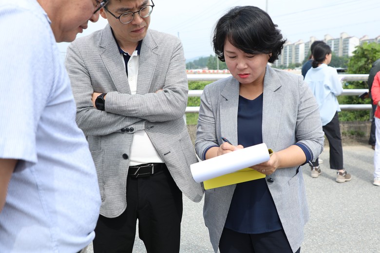 이날 현장 방문은 행정사무감사 전에 운영 현황 및 실태 점검을 확인하기 위한 자리다. 산업건설위원회는 봉암천과 용포리 전선 지중화 사업 및 보행환경 사업 현장, 삼성천 음악분수대, 국립세종수목원을 차례로 방문했다.