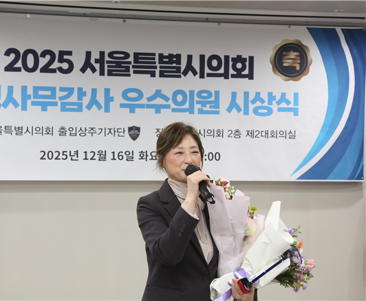 [서울 세계타임즈=이장성 기자] 서울특별시의회 출입상주기자단은 2025년 12월 16일(화) 서울특별시의회에서 「2025년 서울특별시의회 행정사무감사 우수의원 시상식」을 개최하고, 행정자치위원회 우수의원으로 최유희 의원(국민의힘, 용산2)을 선정했다. 시상은 2025년 서울특별시의회 행정사무감사 기간 동안 나타난 의정활동의 성과를 종합적으로 살펴 이뤄졌다.