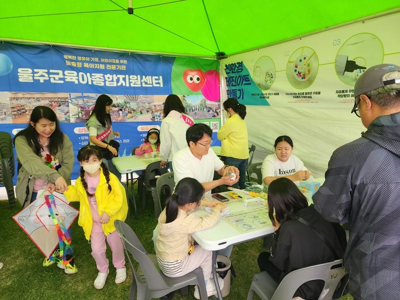 [울주군 세계타임즈=이호근 기자] 울주군육아종합지원센터(센터장 민선영)가 3일 간절곶공원에서 열린 ‘제103회 울주 어린이날 큰잔치’ 행사에서 ‘친환경 레진아트 병뚜껑 키링 만들기’ 체험부스와 육아지원 홍보부스를 운영했다.