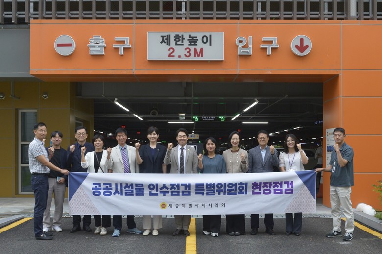 [세종 세계타임즈=이채봉 기자] 세종특별자치시의회(의장 임채성) 제5기 공공시설물 인수점검 특별위원회(이하 ‘인수특위’)는 8일 다음 달 인수를 앞둔 어진동(1-5생활권) 환승주차장을 방문해 현장점검을 실시했다고 밝혔다.