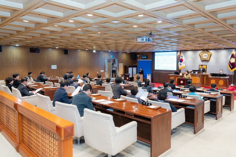 ▲서울특별시 강남구의회 사무기구 사무분장 규칙 일부개정규칙안(김형곤 의원 등 5인)▲서울특별시 강남구 자전거 이용 활성화에 관한 조례 일부개정조례안(황영각 의원 등 9인)▲서울특별시 강남구 생활주변 위험수목 처리 지원에 관한 조례(이동호 의원 등 13인)등 4건의 의원발의 안건과 집행부에서 제출한 3건의 안건을 포함해 7건이 수정가결되며 ▲2025회계연도 결산검사위원 선임의 건 등 총 16건의 안건이 처리됐다.