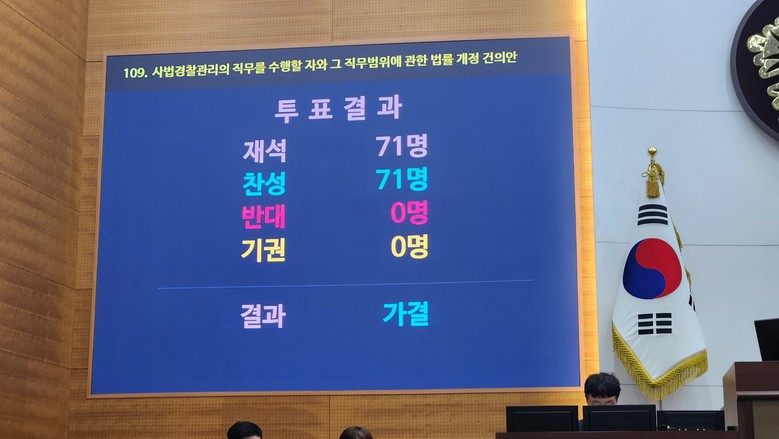 | ▲ 특사경화를 위한 개정 건의안의 만장일치 가결 모습 |