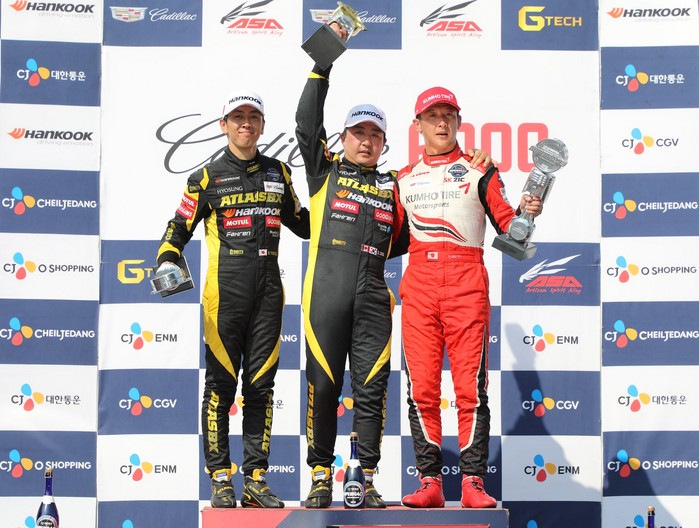 [사진설명]지난 7월 에버랜드 스피드웨이에서 열린 4라운드 당시 포디움에 오른 야나기다 마사타카(왼쪽)와 이데 유지. 챔피언 경쟁에 변수를 만들어낼 주요 경쟁자로 꼽힌다.