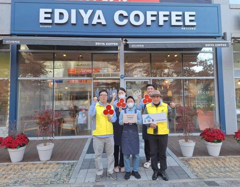 ‘60계치킨 세종소담점’은 매월 관내 취약계층 5가구에 치킨 1마리씩을을, ‘이디야커피 소담동점’은 매달 관내 취약계층 5가구에 음료와 빵 등을 제공하며 나눔문화 확산에 기여하고 있다.