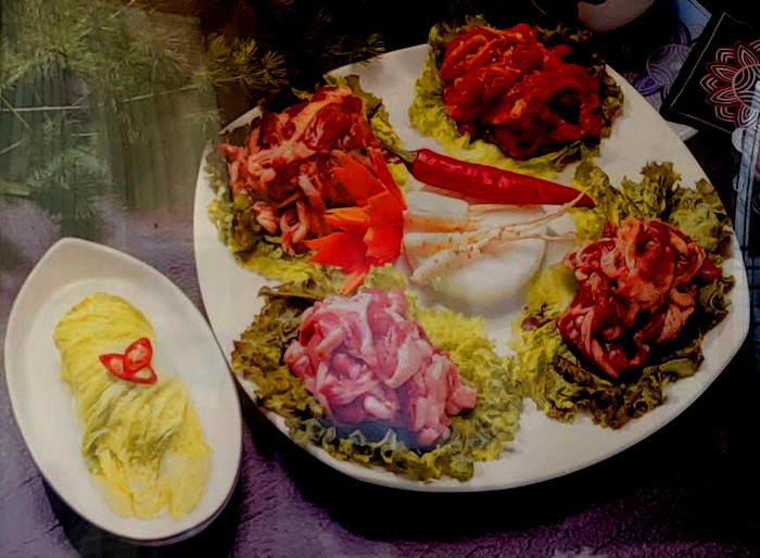 음식점마다 메뉴 및 반찬이 이를 뒷받침해준다. 이곳은 이 두 번째로 자신 있게 내놓는 기본 상차림 메뉴이다. 간장소스와 , 김치, 마늘과 된장, 겉절이, 상추, 깻잎, 청양고추, 양파 등이 제공되며 여기에 양파를 간장 소스에 조금만 담가 맛있게 구워진 생오리 한 점과 곁들여 들게 되면 그 맛은 미식가의 상상에 맡긴다.